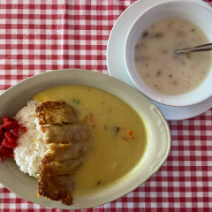 500円(11/22-24. 30周年祭)。2025.11.23(日)、12:15頃。tblg3.38 沖縄カレーランキング3位(1,2位はスパイスカレー店)の日本人絵店主インド料理店。折角沖縄なので山羊カレーを食べたいと思い、数軒隣の鉄板焼ステーキレストラン 碧 牧志店からコチラへ連食。1階満席、2階は1組4人。後客2階2組4人(1階不明)。卓上調味料なしだが、カレー提供時に... 続きを見る